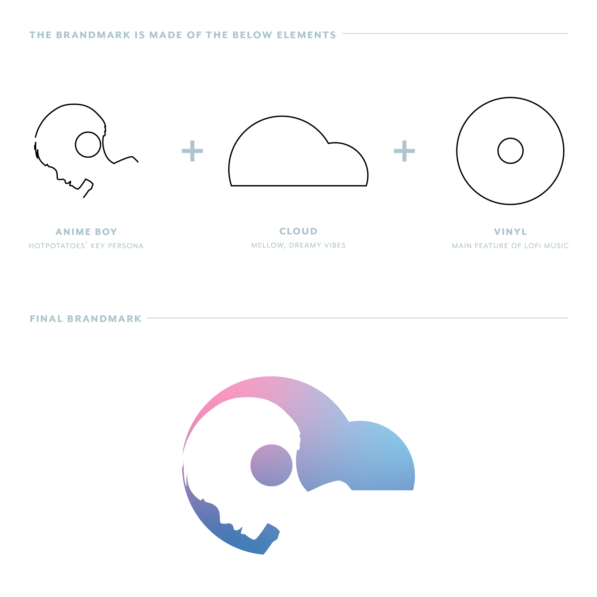 During this stage, I explored the direction of incorporating the anime boy, the brand chill personality, and element of lo-fi music into the logo.