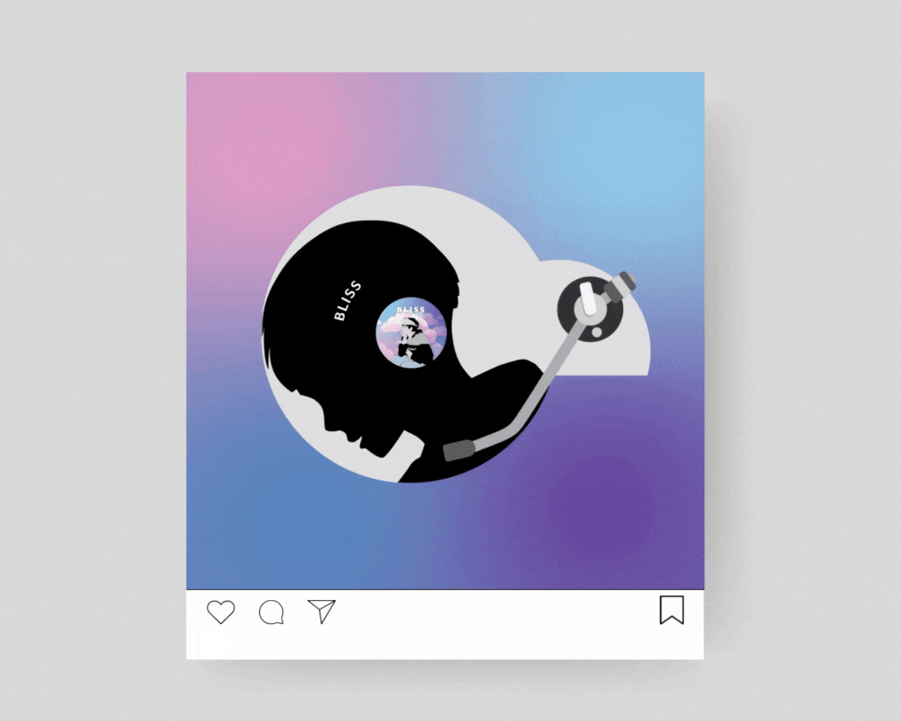 Raw unpolished sounds like vinyl record scatches and clicks are some of the main features of lofi music. The center of the vinyl coincide with the anime boy headphone creates a special interaction, which can be interpreted as the boy being the creator of the music.